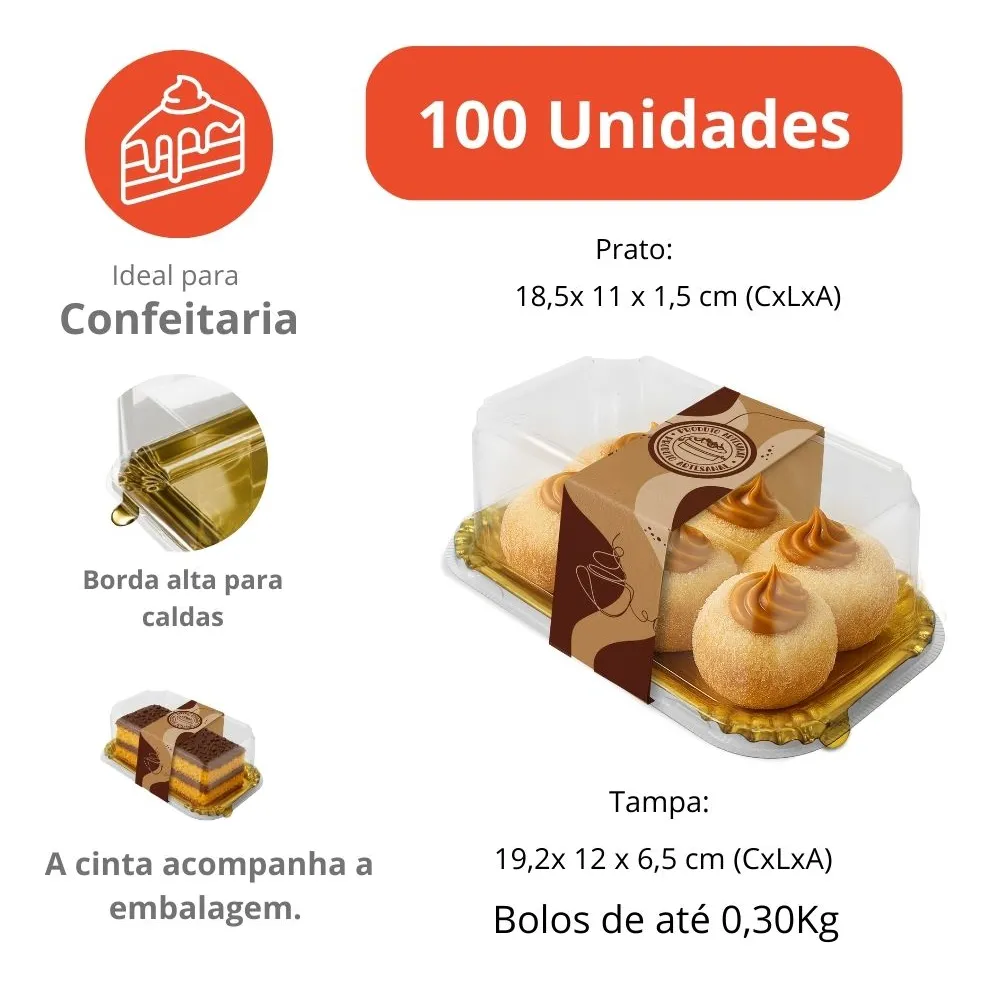 Ideal para fatia de bolo, mini tortas, eclairs, carolinas, sonhos e doces até 400g, une sofisticação, praticidade e apelo visual premium em uma única solução.